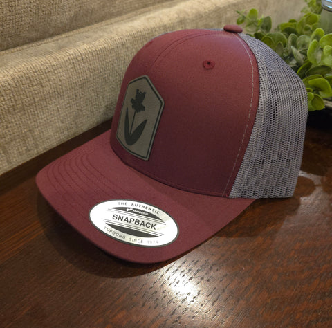 Our leatherette patch hats are handcrafted with a laser engraved iris. These hats make an excellent gift for the iris lover or gardener in your life!