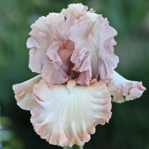 (Joseph Ghio '15)  TB, 38", EM  S. dusky rose-pink; style arms pink; F. white, rose-pink band; beards tangerine, tips white